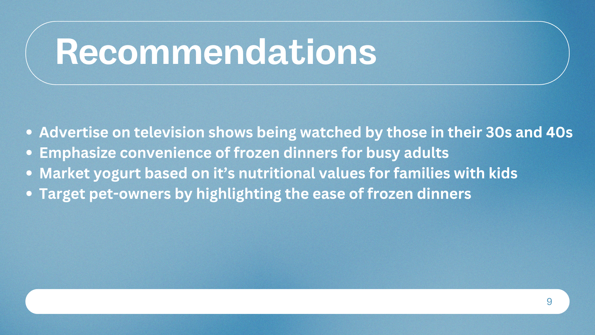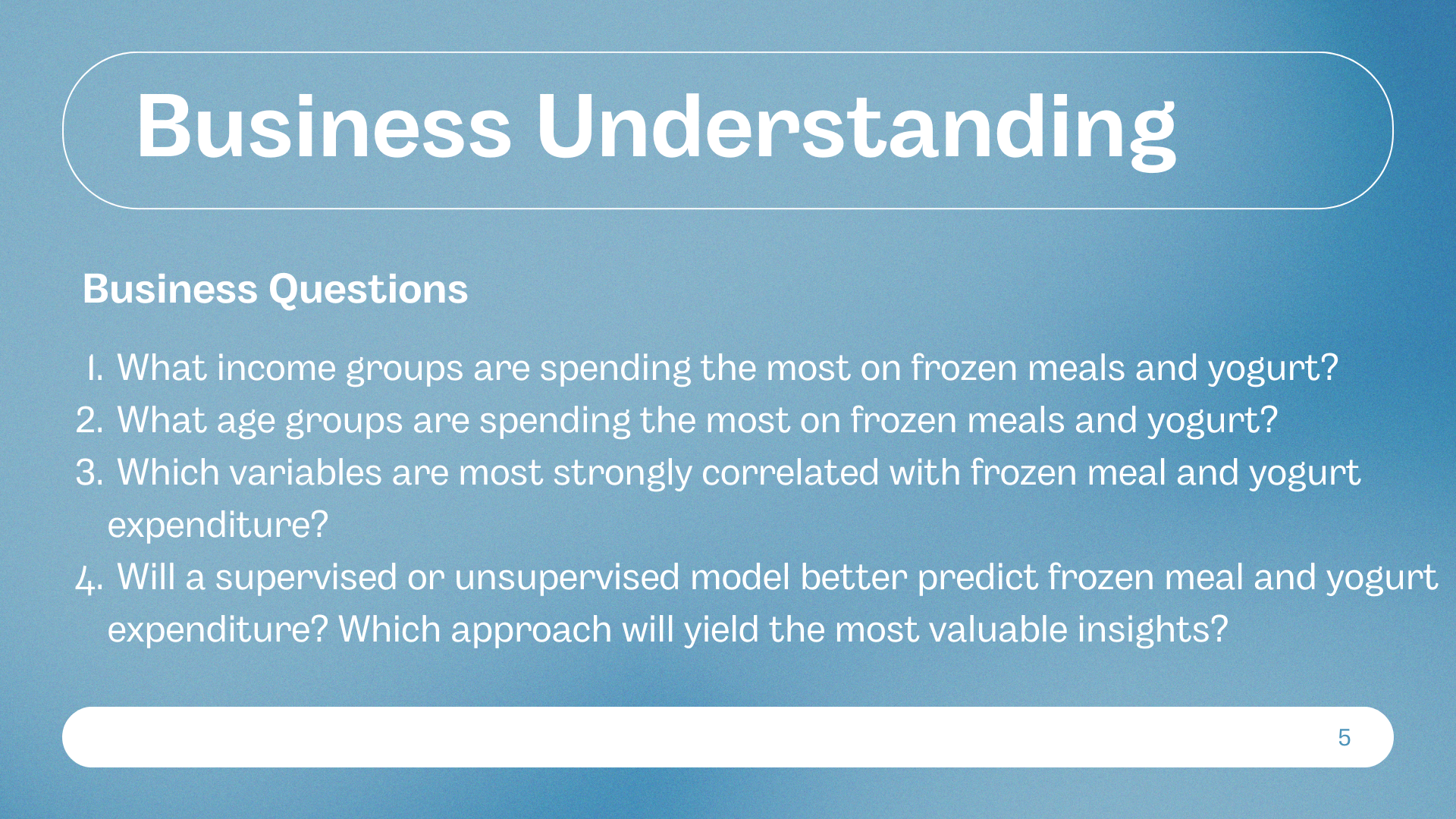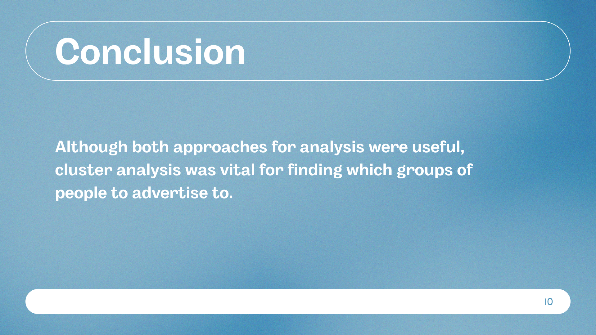 Using these insights, we came up with marketing recommendations tailored to each group. The whole process was a great example of how data can directly inform business strategy—from ad targeting to inventory planning. Below are the slides from our final presentation, where we walk through our methods, findings, and strategic takeaways.