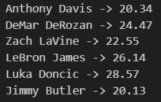 Predicted Points Per Game for 6 NBA Players Going into the 2025-26 Season
